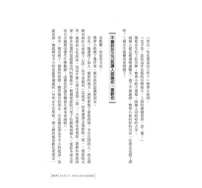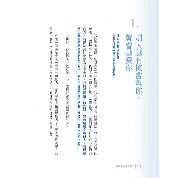.交朋友跟買東西不一樣,你會精挑細選一個感覺無瑕疵的洗衣機或鑽戒,但你不太會想要跟一個感覺無瑕疵的人做朋友。